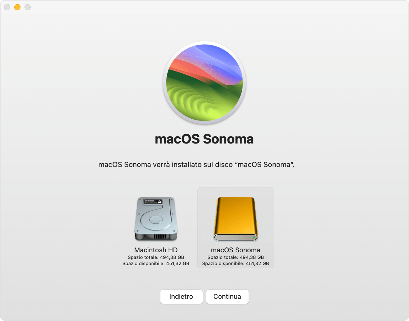 - Scegliere come destinazione l’SSD NVMe esterno.